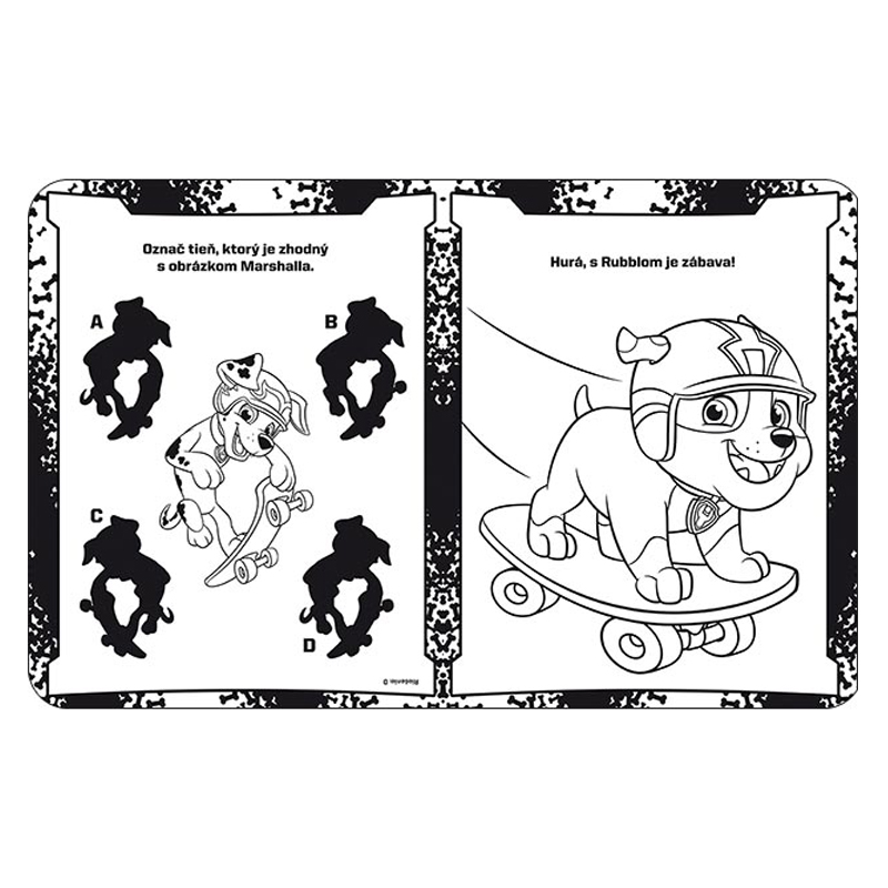 Vymaľovánka obsahuje 24 strán plných maľovaniek a aktivít a viac než 100 metalických a papierových samolepiek na dolepenie a ozdobenie. Motív: Labková patrola