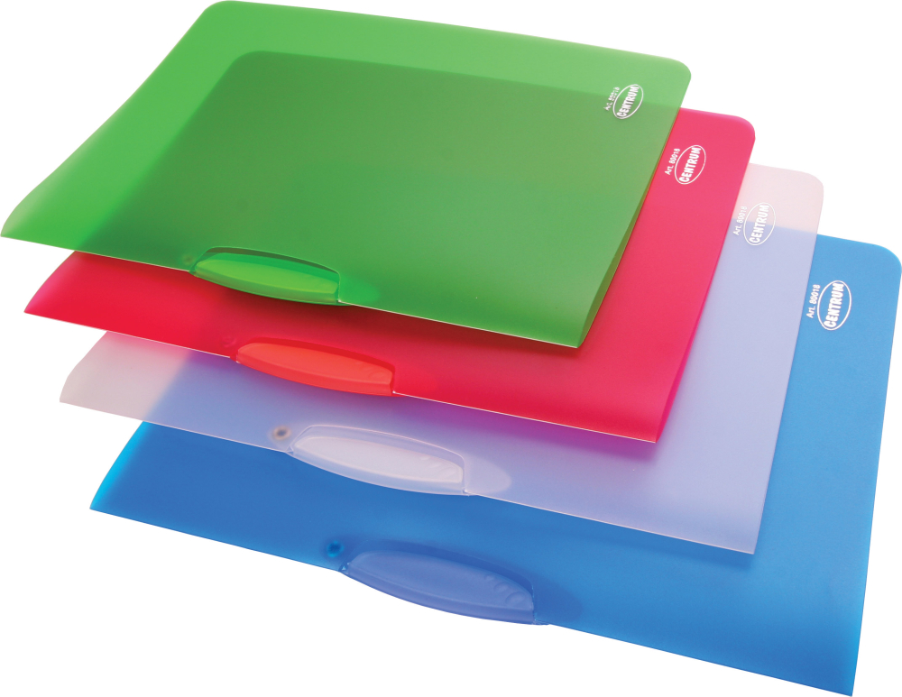 Plastový obal na spisy s klipom, formát A4, PP hrúbky 0,45 mm, rôzne farby. Vhodný na zakladanie neperforovaných dokumentov do hrúbky 5 mm.