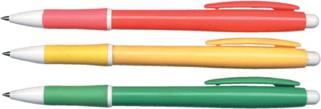 Guľôčkové pero s vymeniteľnou náplňou, plastové telo, plastový klip, hrot 0,7mm. Pogumované ergonomické držanie.