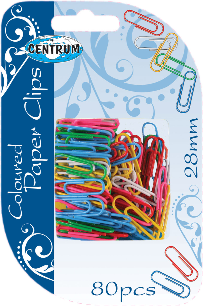 Spisové spony kovové oblé farebné, dĺžka 28mm, 100ks v balení.