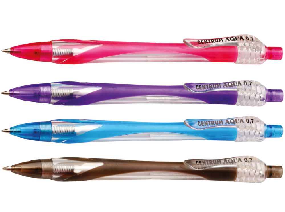 Plastové guľôčkové pero Aqua s vymeniteľnou tuhou 0,7mm, plastový klip.