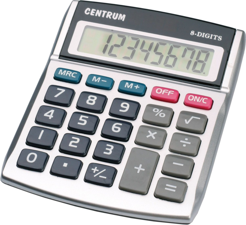 Stolová plastová kalkulačka. Veľký 8 miestny display. Základné funkcie + %, pamäť. Rozmer 130 x 110 x 23 mm.