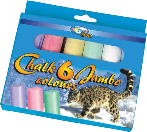 Veľké 6-farebné kriedy, valcový tvar. Dĺžka 115 mm, priemer 24 mm.