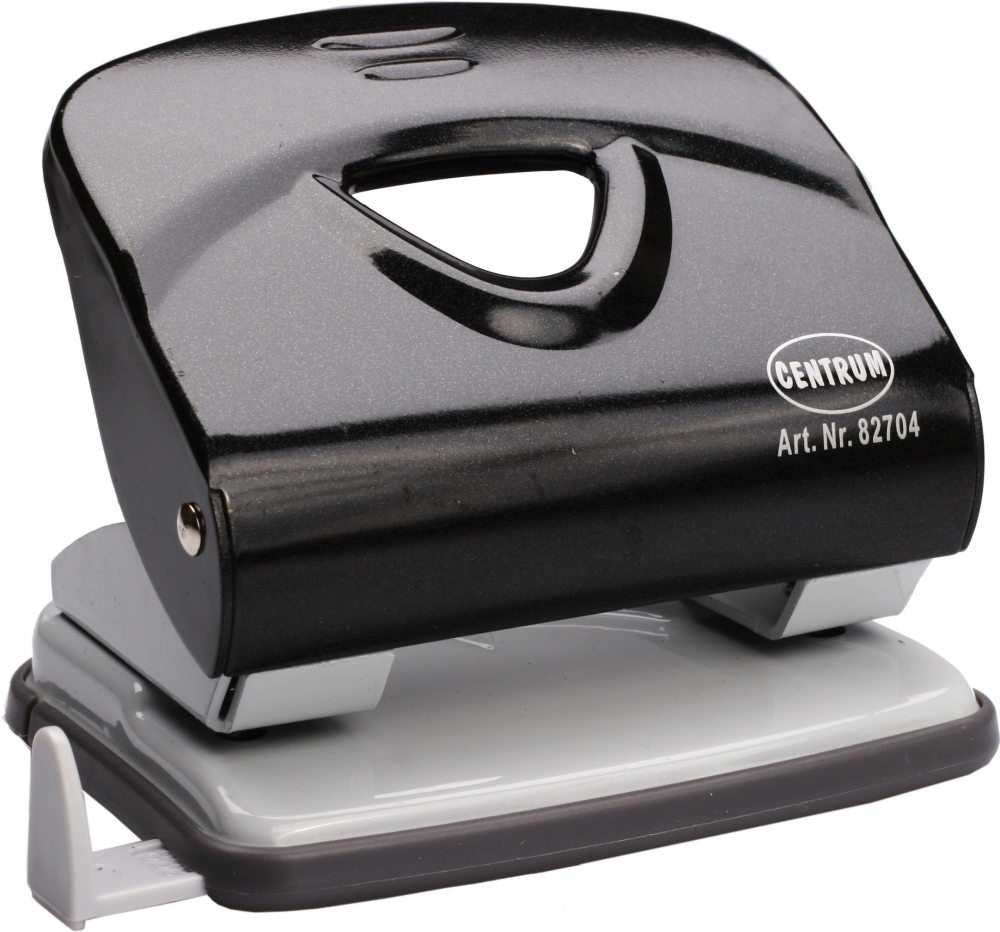 Kancelársky dierovač kovový s dorazom na 25 listov. Farba: čierna.