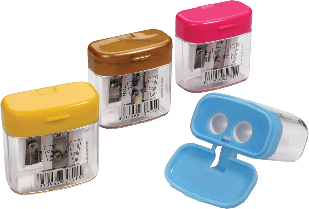 Strúhadlo plastové dvojité s krytom. Farba: mix.