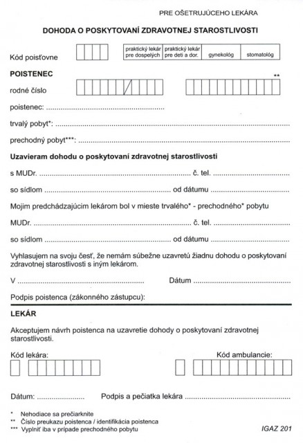 Dohoda o poskytnutí zdravotníckej starostlivosti - súprava