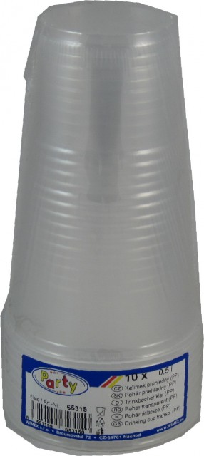 Pohár priehľadný, objem: 500ml, materiál : PP. 10ks v balení.