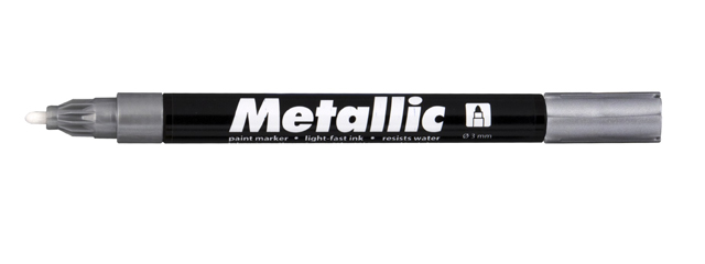 Špeciálny značkovač s permanentným atramentom vhodným na sklo, kov, plast, CD a DVD. Atrament zanecháva lesklú stopu, napodobujúcu farbu. Zmývateľný liehom z neporéznych materiálov. Šírka písma 1,5 mm. Stopa písma je svetlostála, odolná voči vode.