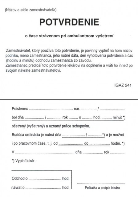 Potvrdenie o čase strávenom pri vyšetrení A7