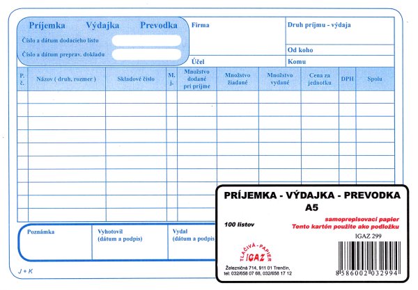 Príjemka - výdajka - prevodka - A5 samoprepis