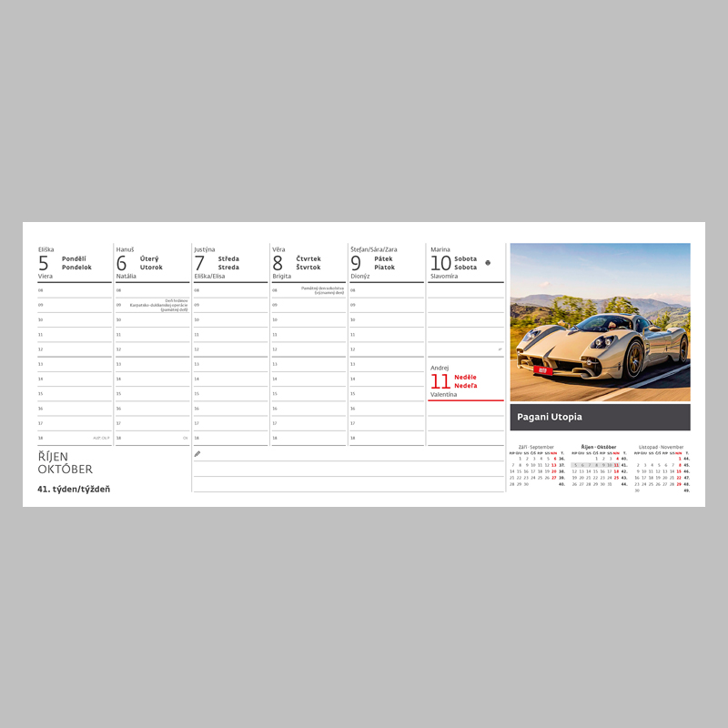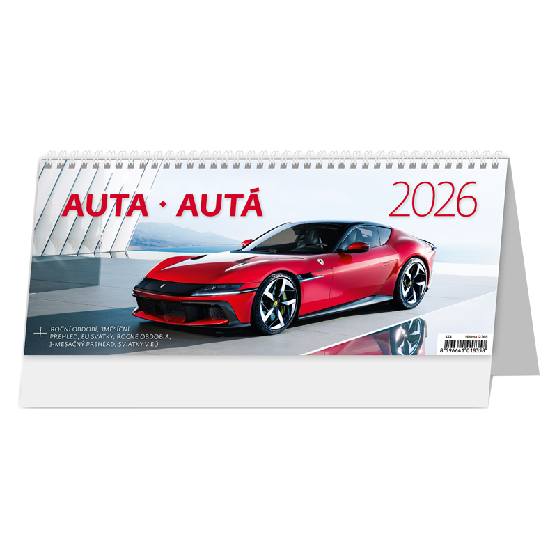 Formát kalendára: 32,1 x 13,4 cm • Kalendárium: české/slovenské týždenné stľpcové • Počet strán kalendára: 60 + 2 • Stojanček: so zámkom • Priestor na potlač: 32,1 x 3,5 cm • + ročné obdobia, 3mesačný prehľad