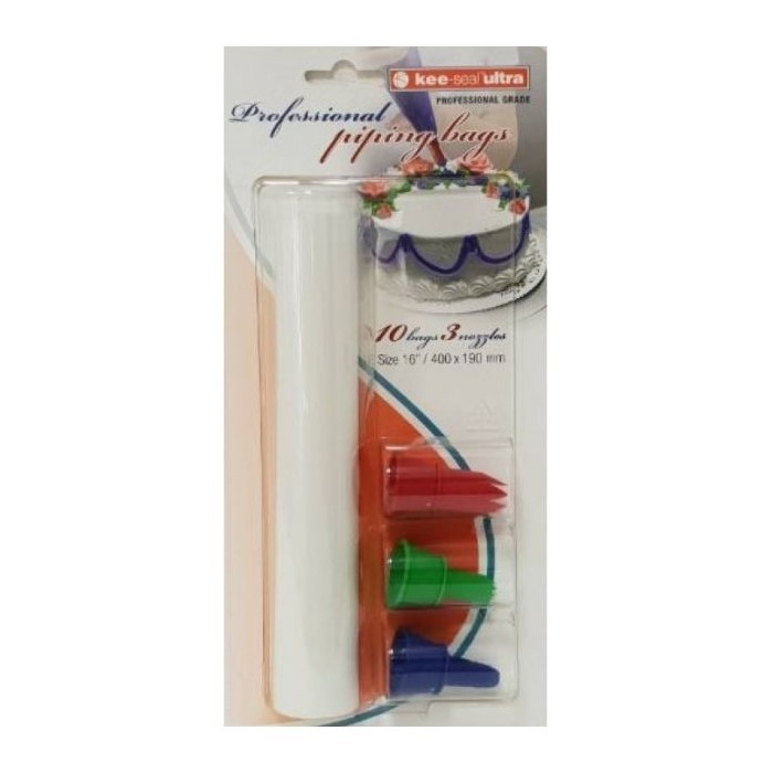 Vrecká na zdobenie zákuskov a tort, obsah: 10 ks sáčkov + 3 ks nástavcov