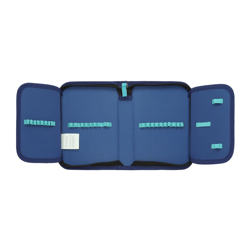 Školský jednoposchodový peračník s 2 klopmi s gumovými úchytmi. Rozmer: 21 x 14 x 4 cm. Povrch peračníka je pokrytý textíliou.
