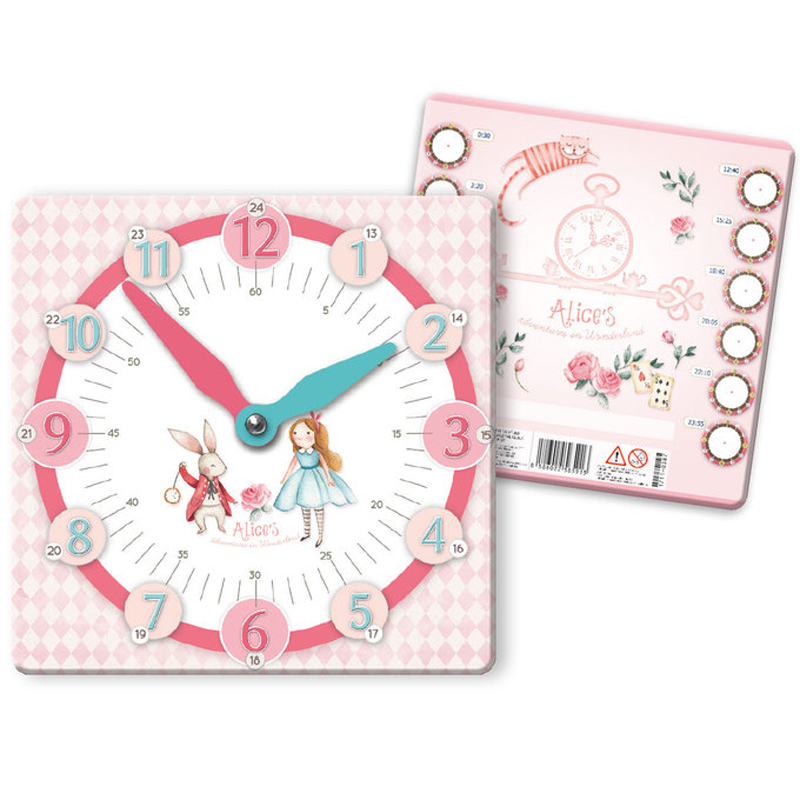 Výučbové papierové hodiny. Rozmery 21x21cm. Rôzne dievčenské motívy.