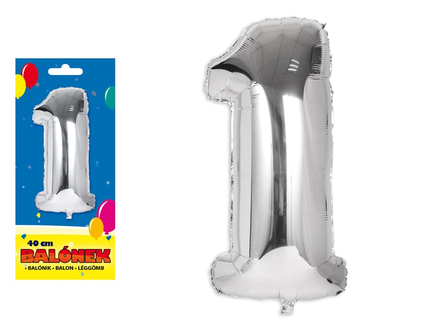 Nafukovací fóliový balónik v tvare čísla 1. Balónik je vyrobený zo striebornej fólie. Na hornom okraji balónu sú očká na priviazanie. Balóniky sú vhodné na narodeninové oslavy, firemné párty a iné spoločenské udalosti.Výška balónu: 40 cmUvedená