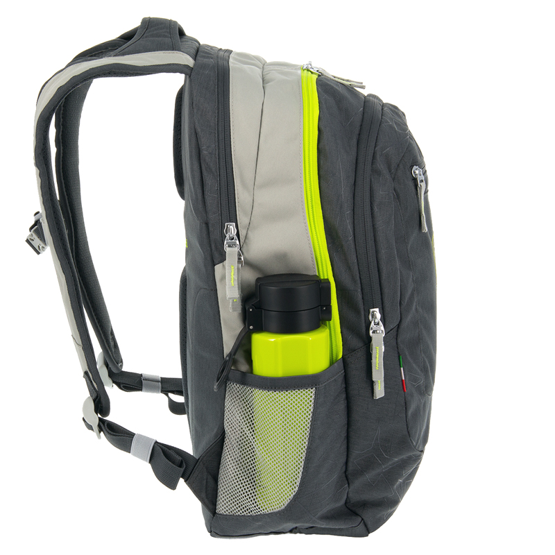 • Bočné sieťované vrecko na fľašu a uzatvárateľné vrecko na mobil, kľúče alebo preukaz