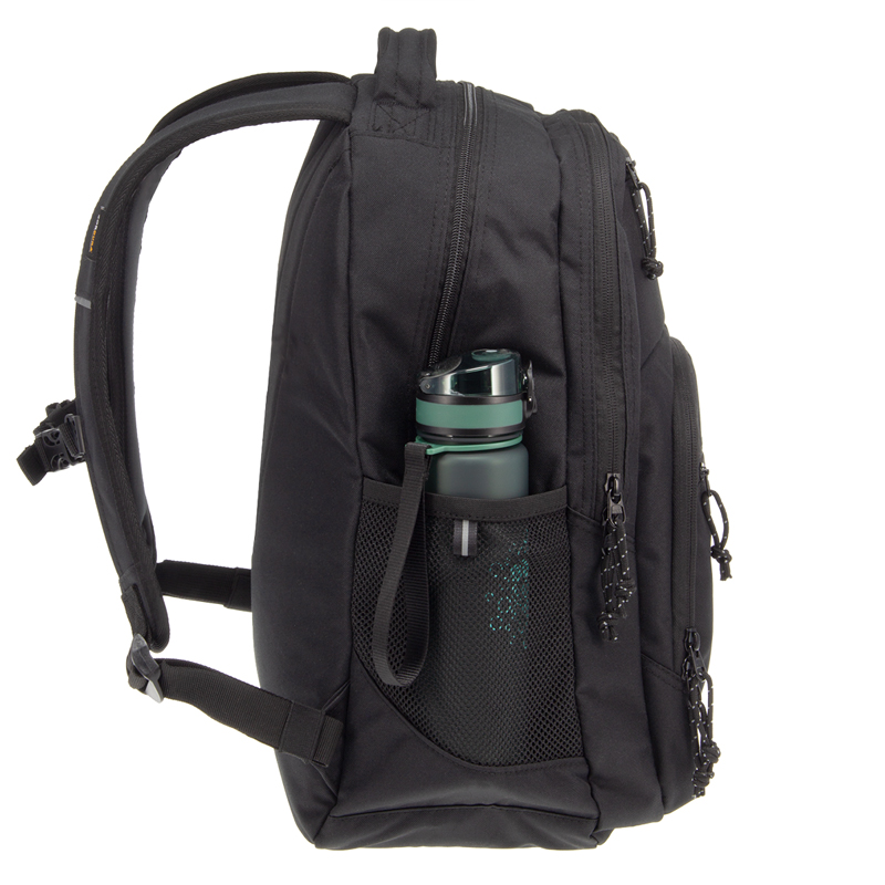 Jasne transparentné, praktické na usporiadanie, ktorých súčasťou sú 2 bočné sieťované vrecká na fľašu s vodou a malé školské potreby, 1 veľká priehradka s polstrovaným držiakom na notebook.