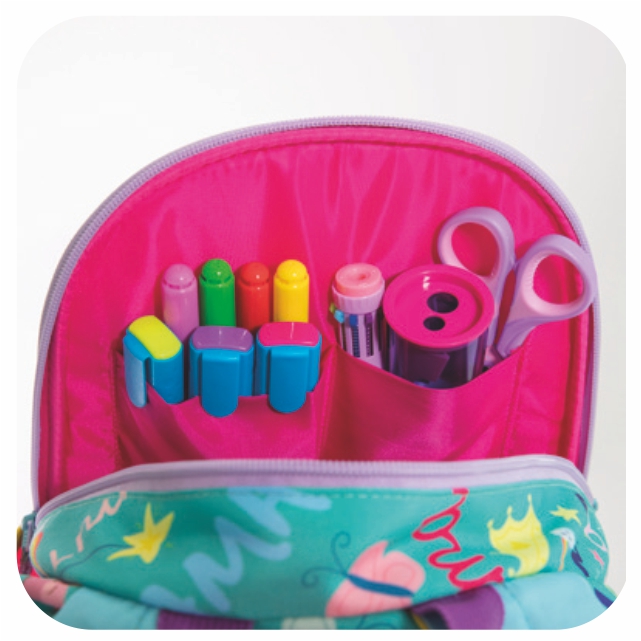 Taška má bočné vrecko zo sieťoviny, tri vnútorné vrecká a dieťa si vie tašku aj označiť.