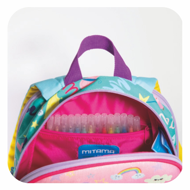 Batoh Spinny od spoločnosti MITAMA je určený pre tých najmenších. Spinny je batoh do škôlky a voľný čas. Výbušná zmes farieb a živosti batoha určuje dvojtvárnosť, tzv. „double face“.