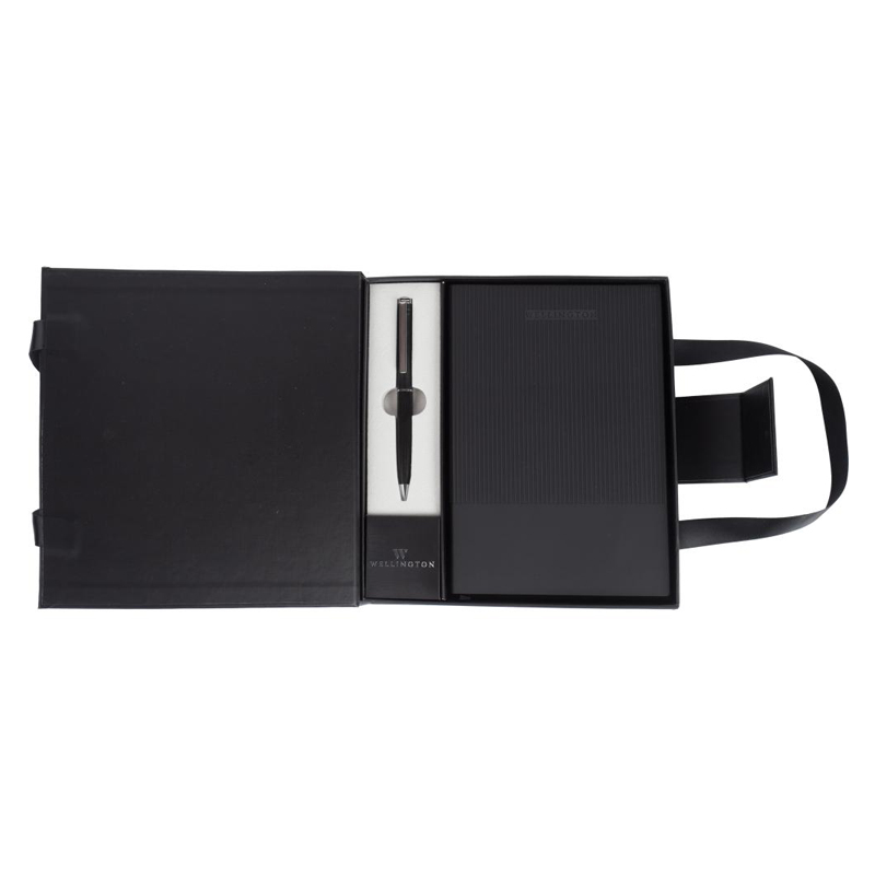 Exkluzívna darčeková sada Oxford pozostávajúca z kovového guľôčkového pera a zápisníka A5. Darčeková sada je úhľadne zabalená v kartónovom balení s magnetickým zapínaním a polyesterovými ozdobnými rúčkami. Rozmery: 22,5 x 21,5 x 4,6 cm Zápisník: Rozmery: 21 x 14,8 x 1,5 cm. 96 listov, 80 gr/m2