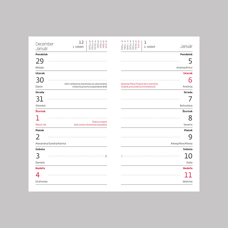 Obľúbený laminovaný povrch príjemný na dotyk, prinášame v úplne novej grafickej úprave. Rozmery: 85x154 mm. Počet strán: 80.