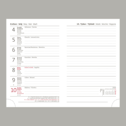 Dosky diára sú vyrobené z matného materiálu na báze zušľachteného papiera, ktorý je bez štruktúry a tým neruší vzhľad samotného produktu. Diár je doplnený gumičkou na uzavretie a pútkom na pero. Kompletný dizajn dopľňa obšitie dosiek niťou. Do diára možno raziť cez fóliu, prípadne ich potlačiť sieťotlačou. Diár obsahuje: osobné údaje, plánovač dovolenky (mesačný prehľad), plánovací kalendár, medzinárodné sviatky, ročný výhľad, týždenný layout, adresár. Rozmery: 90x140 mm. Počet strán: 128.