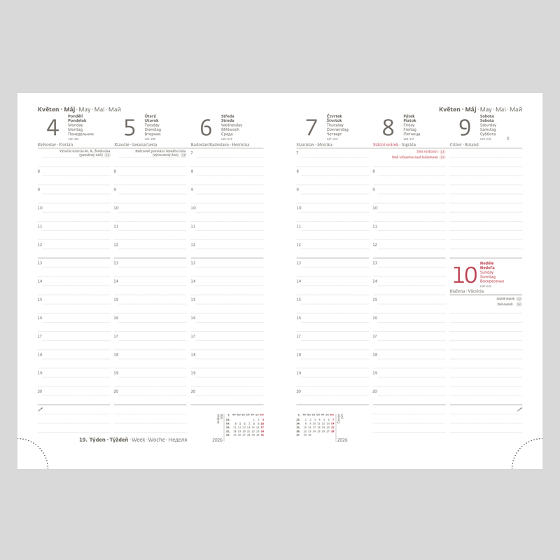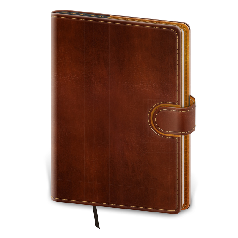 Predstavujeme moderný typ diárov s vymeniteľnými doskami a variabilným obsahom. Praktické dosky diára sú vybavené pútkom na ceruzku, magnetickou uzavieracou klapkou a ich okraj zdobí obšitie niťou. Dosky je možné použiť opakovane pre diáre i zápisníky, preto neobsahujú razbu letopočtu. Kvalitná koženka umožňuje dosiahnuť vynikajúce výsledky pri razbe bez fólie. Do diára Flip možno pridať poznámkový blok. Stačí si vybrať jednu z náhradných náplní, ktorú možno jednoducho do dosiek doplniť. S obľúbenými doskami FLIP sa používateľ nemusí lúčiť ani v budúcom roku. Pripravíme opäť náhradné náplne pre denné a týždenné diáre. Diár obsahuje: osobné údaje, plánovač dovolenky (mesačný prehľad), plánovací kalendár, telefónne predvoľby, štátne sviatky Českej a Slovenskej republiky, medzinárodné sviatky, ročný výhľad, týždenný layout, adresár, mapa Európy a Českej a Slovenskej republiky. Rozmery: 143x205 mm. Počet strán: 128.