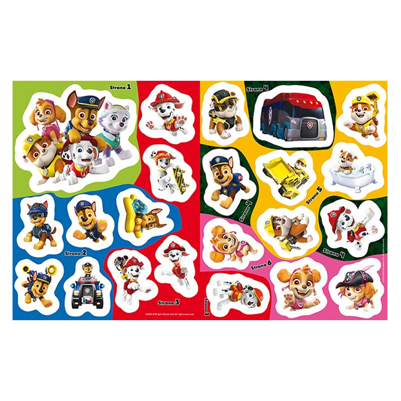 Samolepková knižka obsahuje 12 strán a 4 strany samolepiek na dolepenie. Vybrané samolepky majú okraje, ktoré v tme svietia. Motív: Labková patrola. Rozmer: 276 X 216 X 3 mm