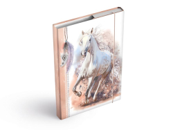 Školské dosky na zošity vo veľkosti A5 s motívom koňa. Nevyhnutná súčasť vybavenia každého školáka. Vďaka školským doskám budú všetky zošity a učebnice pohromade a neponičené. Tieto dosky na zošity sú zabezpečené gumou, ktorá zabraňuje samovoľnému ot