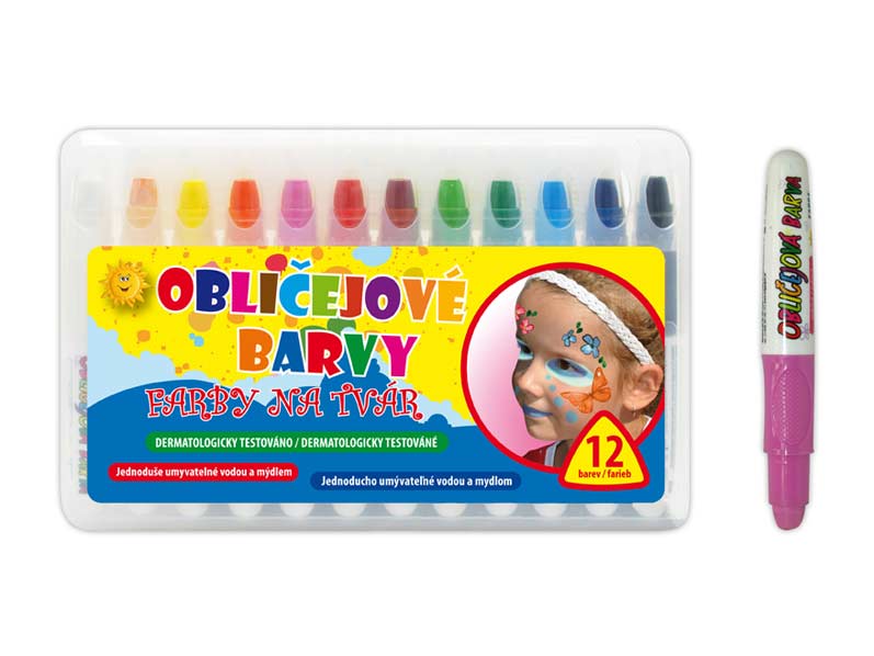 Súprava 12 farieb na tvár, 72g, dermatologicky testované, jednoducho umývateľné vodou a mydlom.