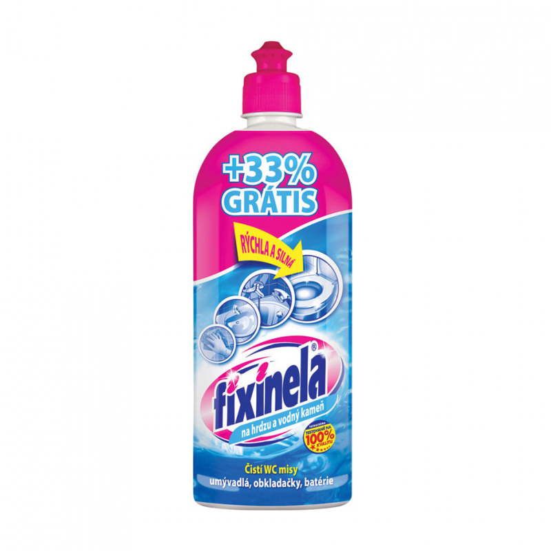 Údajový hárok Karta bezpečnostných údajov Prostriedok určený na čistenie umývadiel, vaní, obkladačiek, toaliet a silne znečistených plôch.Na hrdzu a vodný kameň, zabíja baktérie. Testované na 100% kvalitu. Čistí WC misy, umývadlá, obkladačky, batérie. Objem: 500 ml Návod na použitie: Naniesť Fixinelu, nechať pôsobiť podľa intenzity znečistenia a opláchnuť vodou. R36/38 Dráždi oči a pokožku. S2 Uchovávajte mimo dosahu detí. S26 V prípade kontaktu s očami je potrebné ihneď ich umyť s veľkým množstvom vody a vyhľadať lekársku pomoc. S46 V prípade požitia, okamžite vyhľadajte lekársku pomoc a ukážte tento obal alebo označenie. Prvá pomoc: pri zasiahnutí pokožky: umyť vodou a mydlom. Nepoužívajte na vane s poškodenou glazúrou. Xi Dráždivý. Bezpečnostné informácie Uchovávajte mimo dosahu detí. Po manipulácii starostlivo umyte ruky vodou a mydlom. Noste ochranné rukavice/ ochranné okuliare. Zloženie produktu 5-15% kyselina fosforečná, < 5% aniónový tenzid, Farbivo