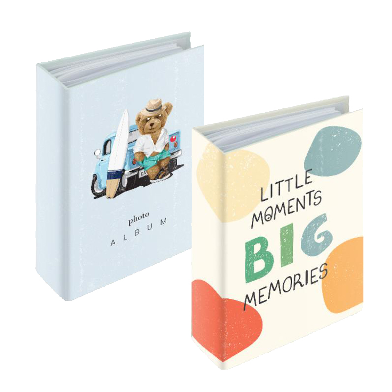 Fotoalbum na 100 fotiek, rozmer fotiek 10x15cm. Rozmer fotoalbumu: 13,5 x 5,2 x 18 cm. Rôzne motívy, motív sa nedá vybrať.