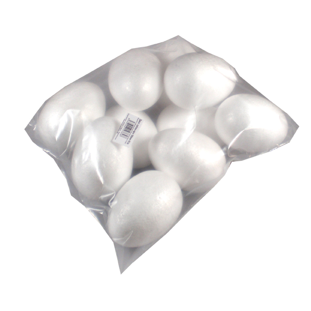 Dekoračný polystyrén - vajce 100 mm, môže sa maľovať s akrylovými farbami, použiť na falošný patchwork, ozdobiť filcom, flitrami, oglitrovať, oservítkovať, atď. Počet v sáčku: 10 ks.