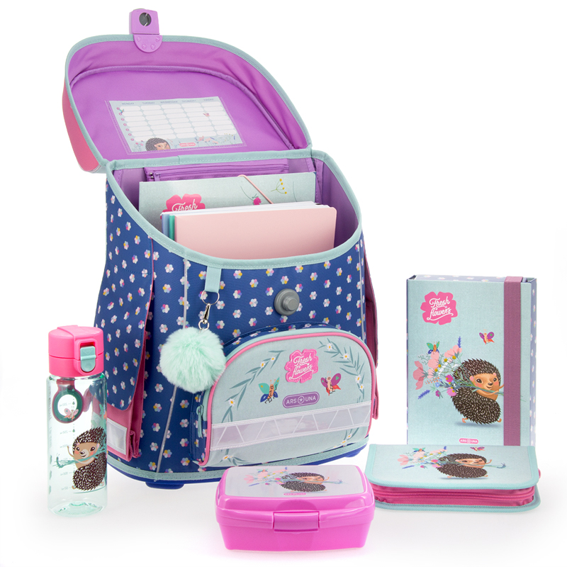 Školský set – aktovka, peračník a vrecko oxybag určený dievčatám a chlapcom vo veku 6 -10 rokov, teda prvého stupňa základnej školy od výšky 121 cm. Ponúka kvalitný priestor na školské potreby aj odľahčenú konštrukciu pre pohodlnejšie nosenie. Vďaka špeciálnemu materiálu váži taška len 950 gramov.