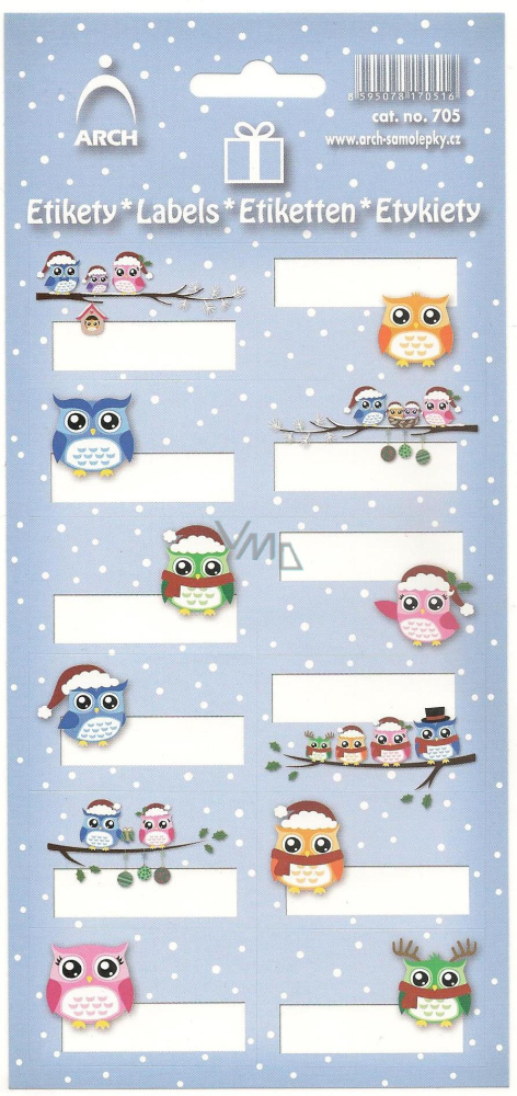Samolepky s priestorom na vpísanie mena, ktorému darček patrí. Počet samolepiek: 12.
