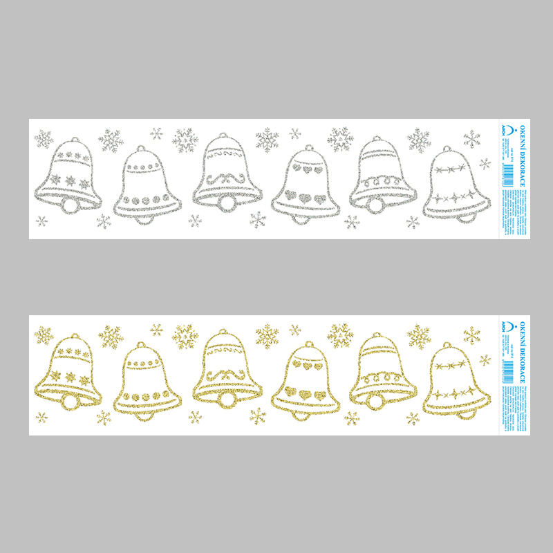 OKENNÁ FÓLIA VIANOČNÁ ZVONY. Zlaté alebo streieborné glitrové mix.