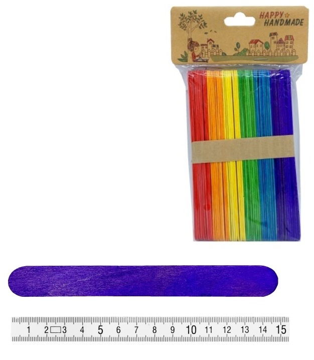 Sada drevených farebných paličiek. Balenie obsahuje 50 kusov veľkosti : 150 x 18 x 1,5 mm.