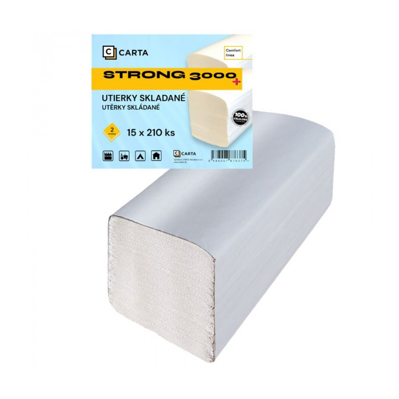 Skladané utierky sú 2-vrstvové zo 100% celulózy v bielej farbe. Vysoký štandard dvojvrstvového lepeného materiálu. Vysoká savosť poskytuje komfort pri používaní. Tieto utierky sú vhodné ako vyšší hygienický štandard pre potreby firiem a organizácií. Sú vhodné pre všetky typy štandardných zásobníkov.