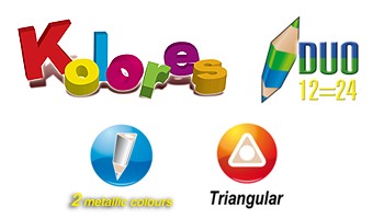 Farbičky trojhranné obojstranné 24 ks = 48 farieb. Žiarivé farby s vysokým obsahom pigmentu, extra silná tuha 3mm. Strúhadlo v balení.