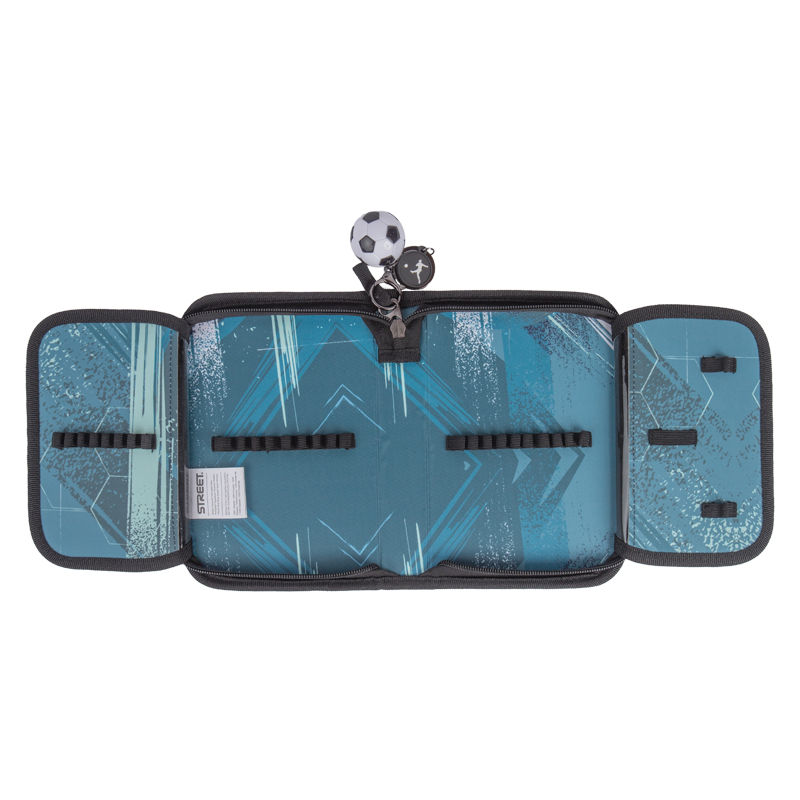 Školský box na zošity, formát A5,s motívom futbal, zatváranie zaistené gumičkou,materiál tvrdý karton.