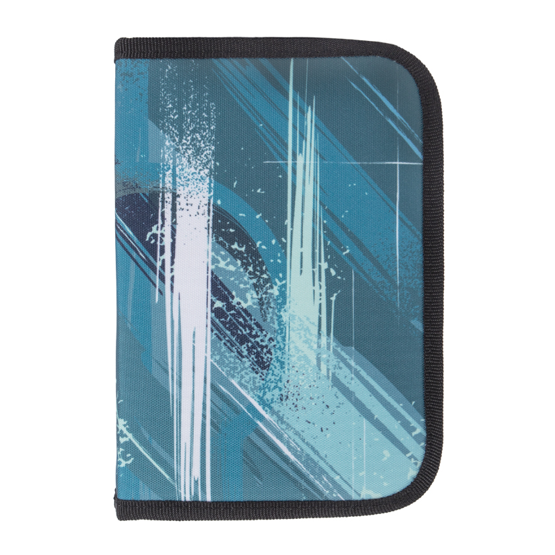 Školský jednoposchodový peračník s 2 klopmi s gumovými úchytmi. Rozmer: 21 x 14 x 4 cm. Povrch peračníka je pokrytý textíliou.