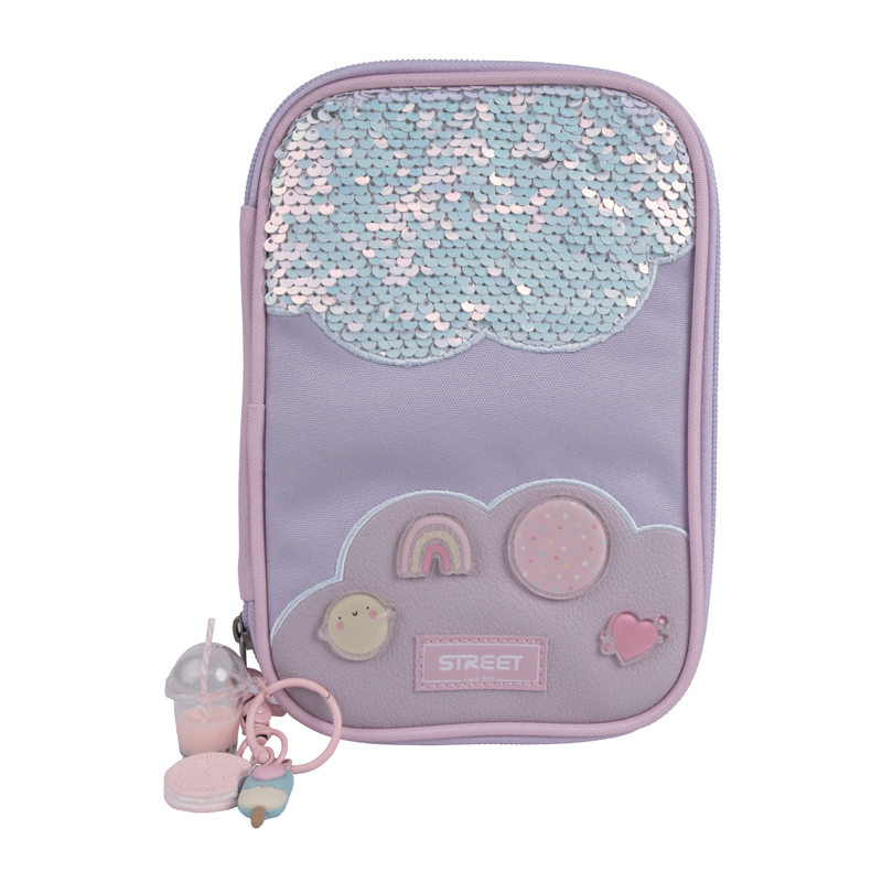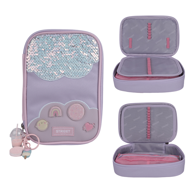Školské púzdro v modernom prevedení. Vybavené pevnými zipsami, sieťovanou kapsičkou na zips a chlopňou s pevnými pútkami po oboch stranách. Pod chlopňou je miesto pre volné uloženie písacích potrieb či iných drobností. Vhodné pre školákov na 2. stupni a starších študentov. Puzdro je ľahko umývateľné.Rozmer: 22x10x5,5cm.