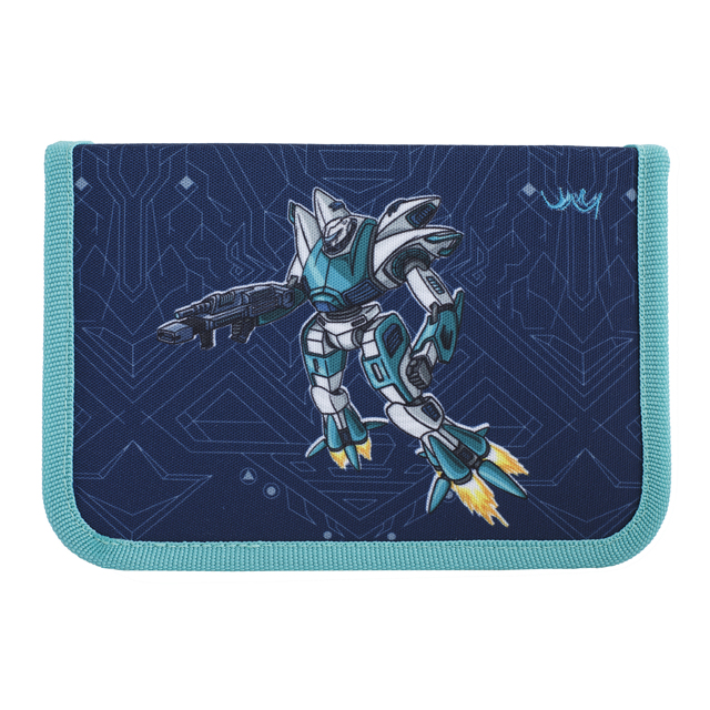 Prázdny jednoduchý peračník s jednou klopou,s gumovými úchytmi na ceruzky a perá, vreckom na suchý zips vhodným na peniaze, gumu a prepážkou s priehľadnou fóliou a rozvrhom hodín. Výška 20,0 cm