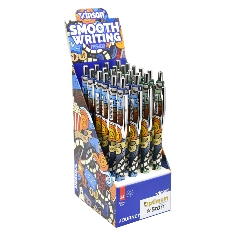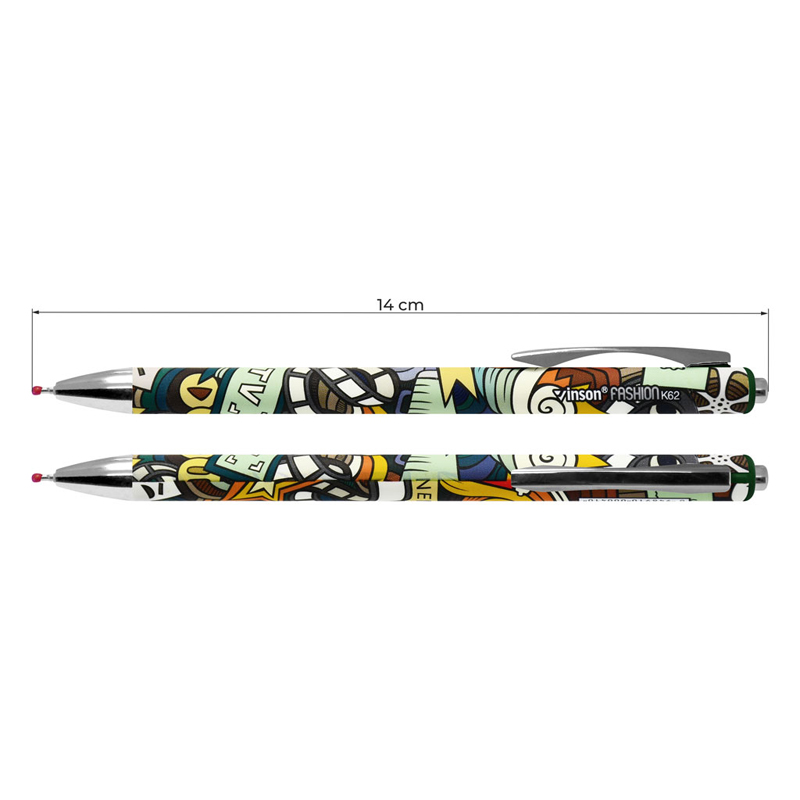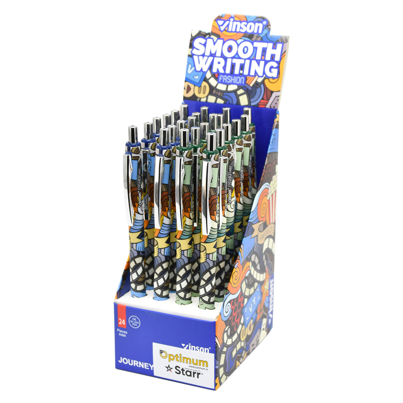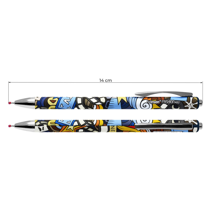Pero guličkové VINSON K62 Journey. Pero s gélovým atramentom, farba atramentu modrá. Hrúbka písma 0,7mm. Pero má klikací mechanizmus, kovový hrot a klip. Balenie: 24 ks. Cena za 1 ks.