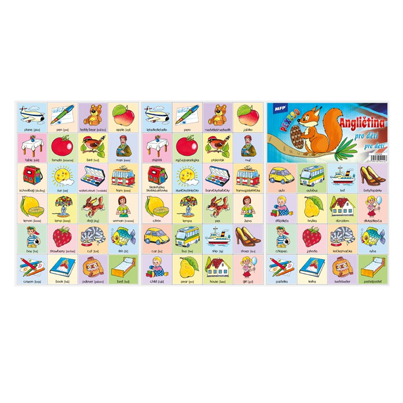Populárna detská stolová hra pexeso pre malé deti s nazvom angličtina pre deti. Hra obsahuje 32 dvojíc obrázkov veľkosti 51x51 mm. Vynikajúca učebná pomôcka pre deti aj pre rodičov. Naučte svoje deti základné anglické slovíčka a precvičujte ich pamäť
