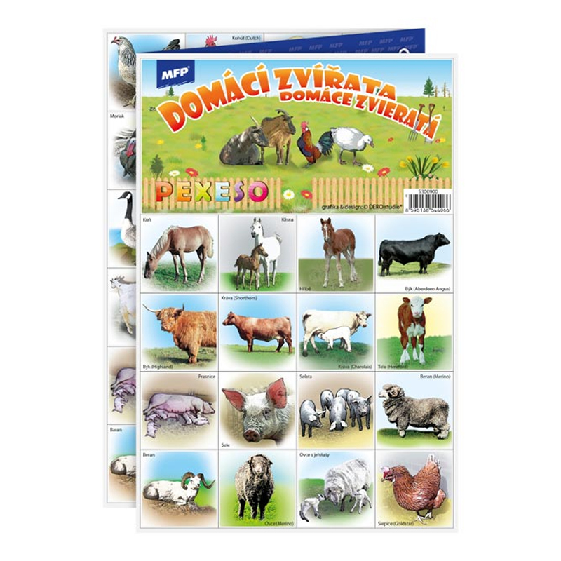 Spoločenská hra na precvičovanie logického myslenia a pamäte detí. Pexeso je nutné nastrihať. Motív: domáce zvieratká.