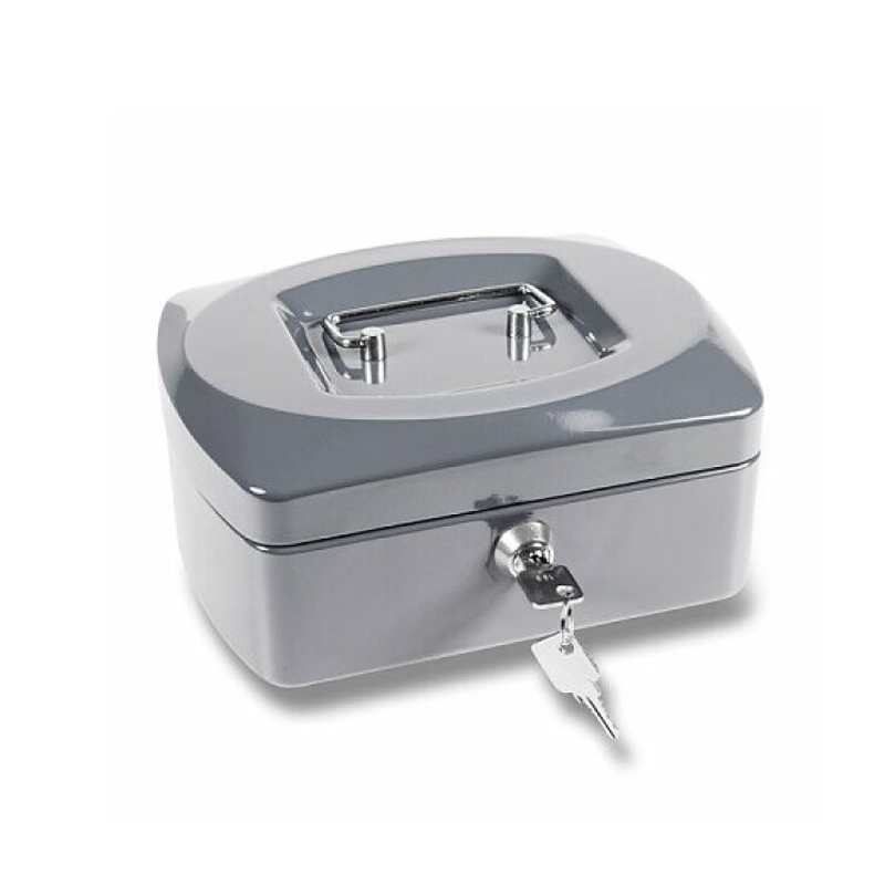 Príručná pokladnička RON, rozmery 205 x 160 x 85 mm. Farba : strieborna.