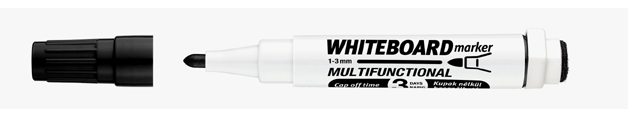 Značkovač na biele magnetické tabule zdraviu neškodlivý stierateľný za sucha svetlostály alkoholová báza skladovať vo vodorovnej polohe valcový hrot šírka stopy 1-3 mm farba: čierna balenie: 12 ks