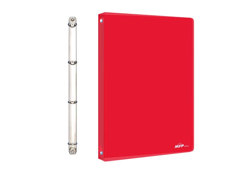 Poradač v moderných farbách na zakladanie dokumentov vo formáte A4, 4-krúžková mechanika. Vyrobené zo silného polypropylénu. Farba: červená.