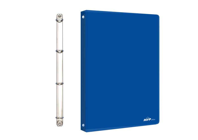 Poradač v moderných farbách na zakladanie dokumentov vo formáte A4, 4-krúžková mechanika. Vyrobené zo silného polypropylénu. Farba: modrá.